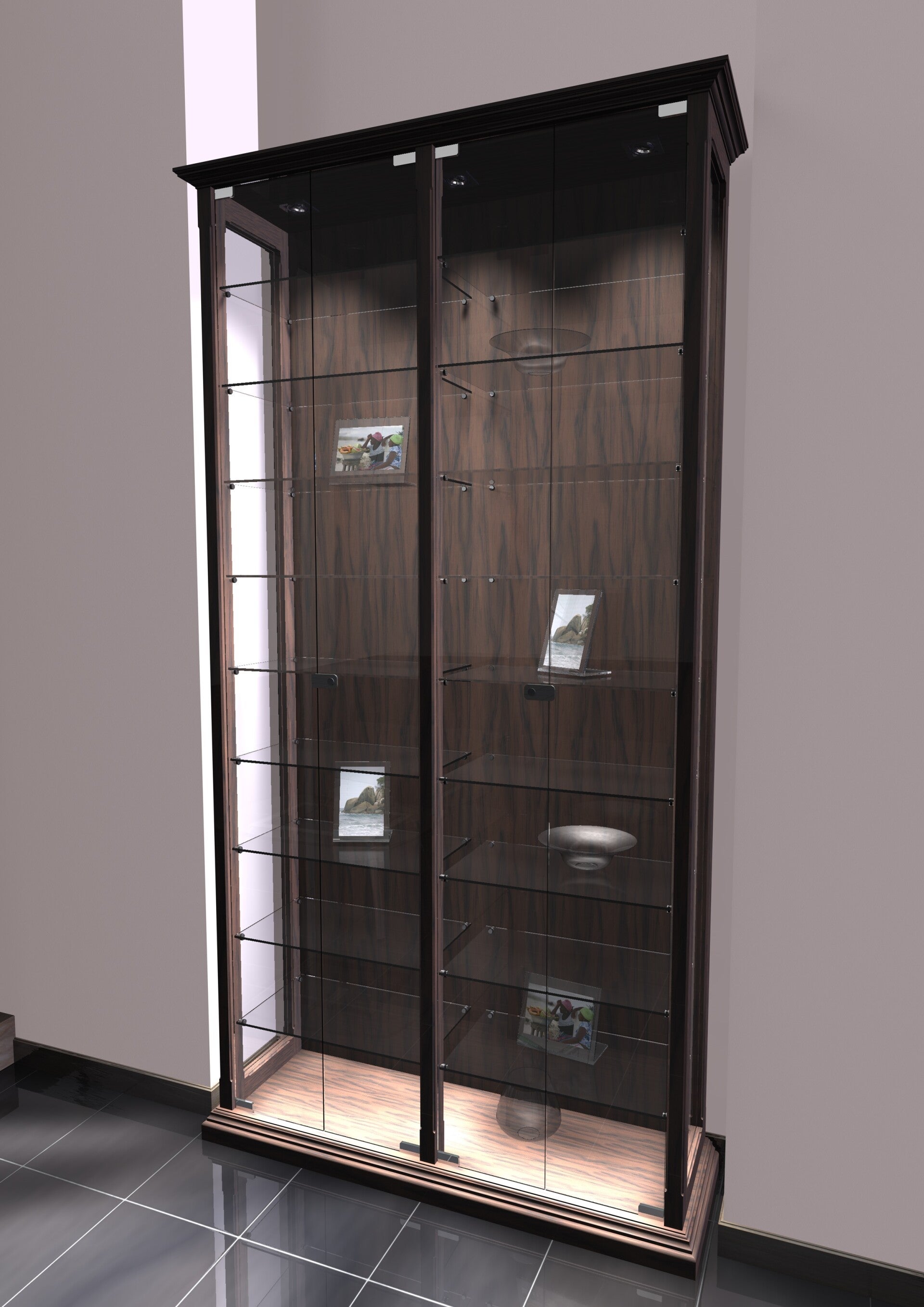 Vetrina in Ebano con ante in cristallo ripiani e faretti a led. Corsico (MI)