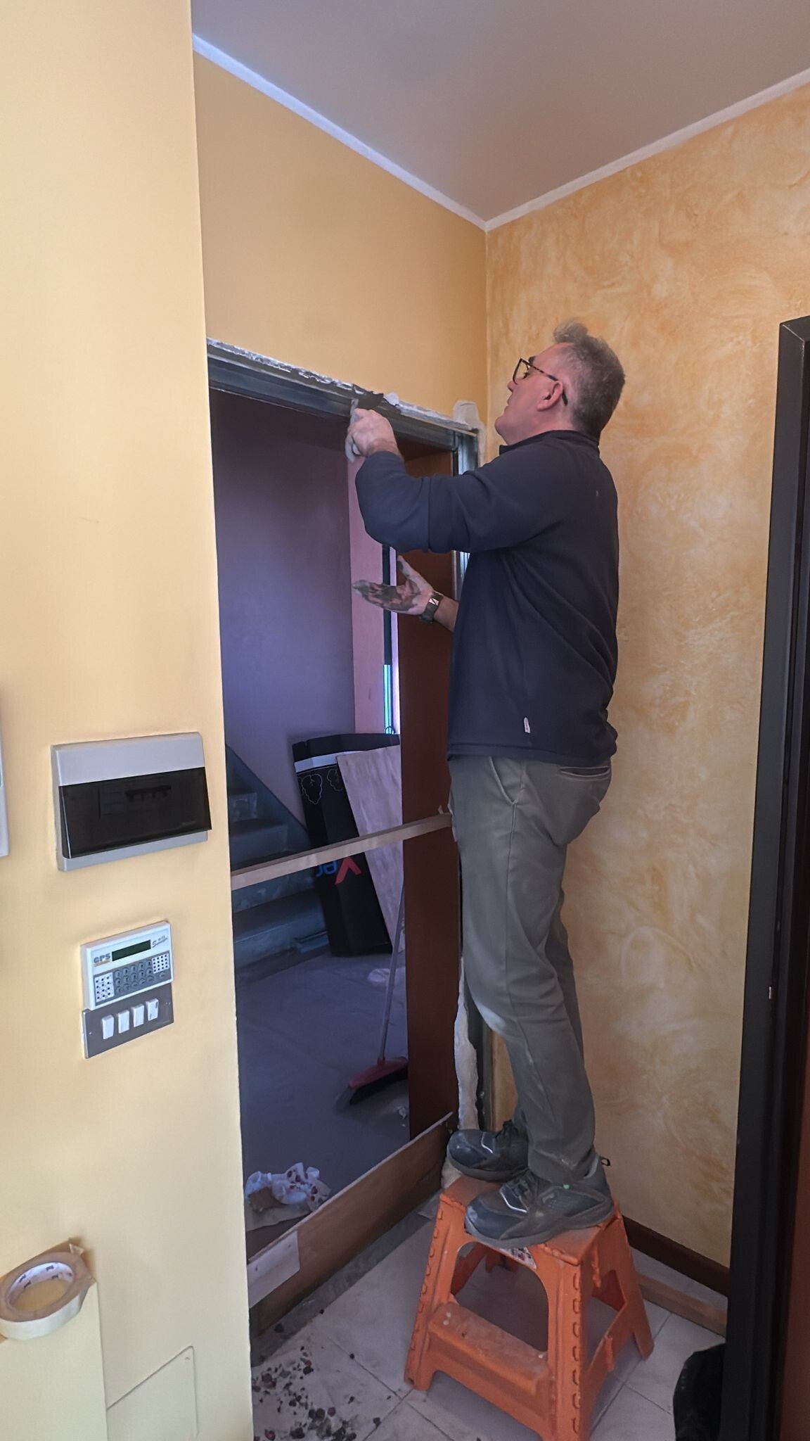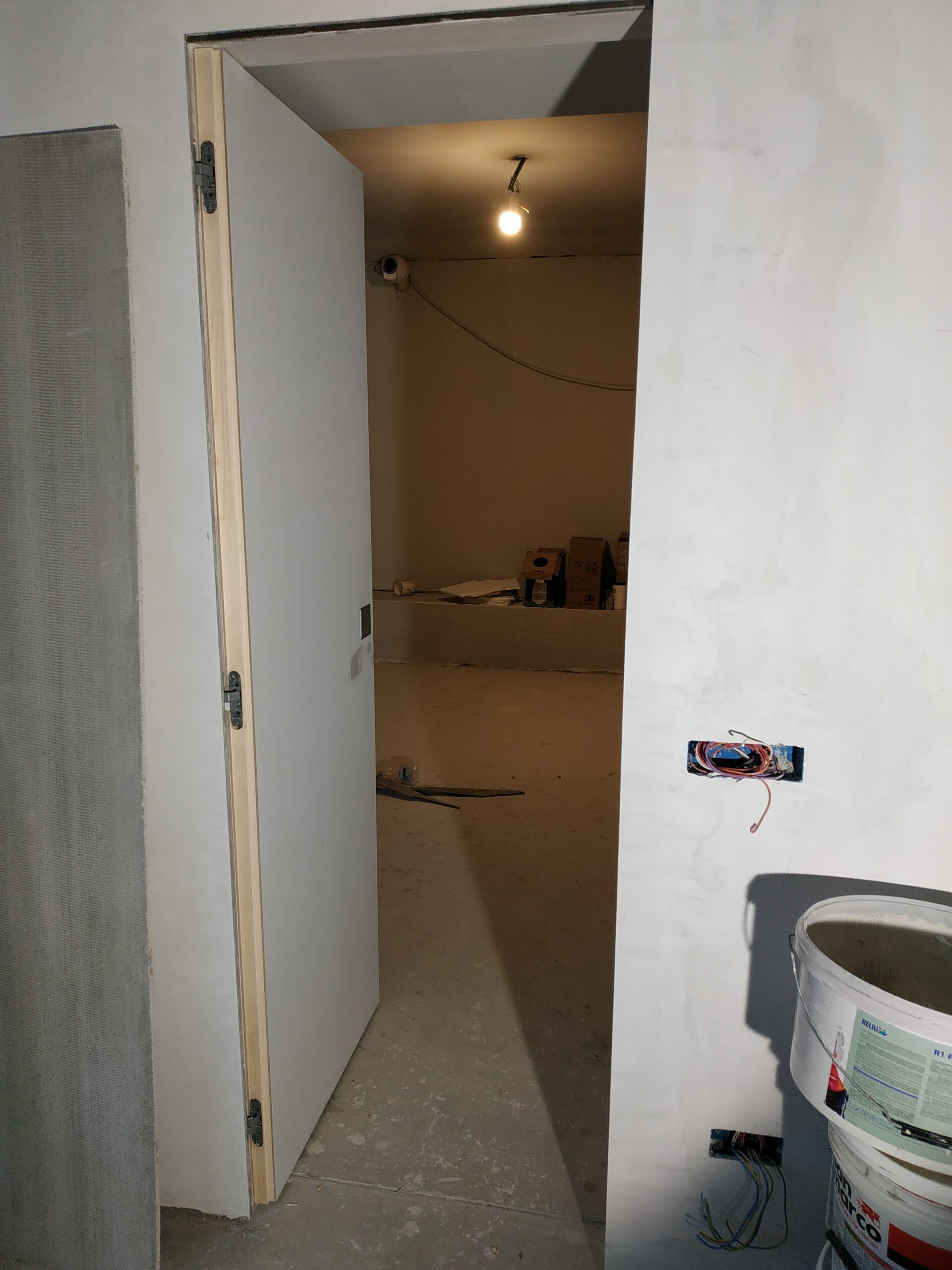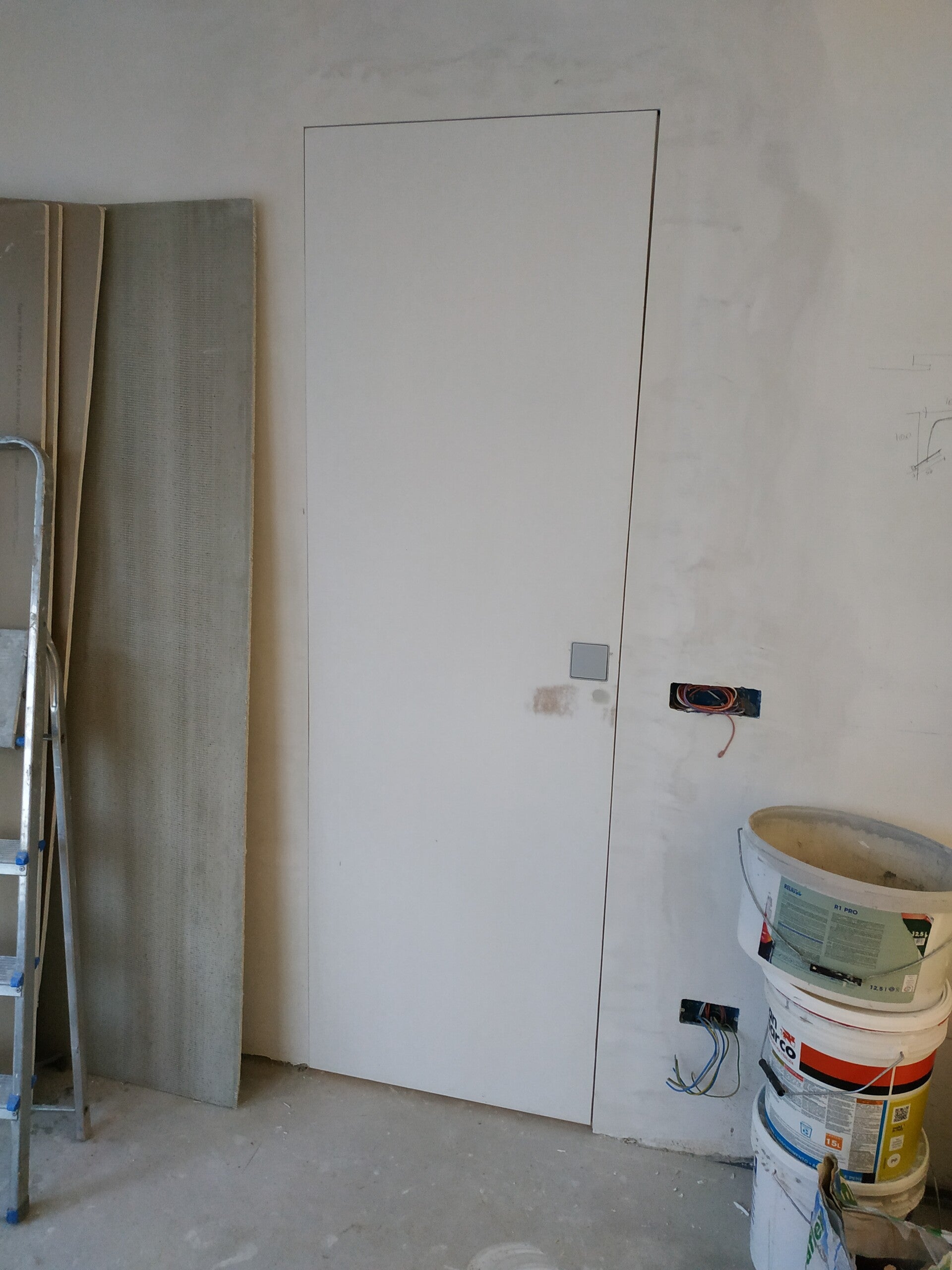 Porta filo muro finitura tempera con maniglia a pendolo. Cavallasca (CO)