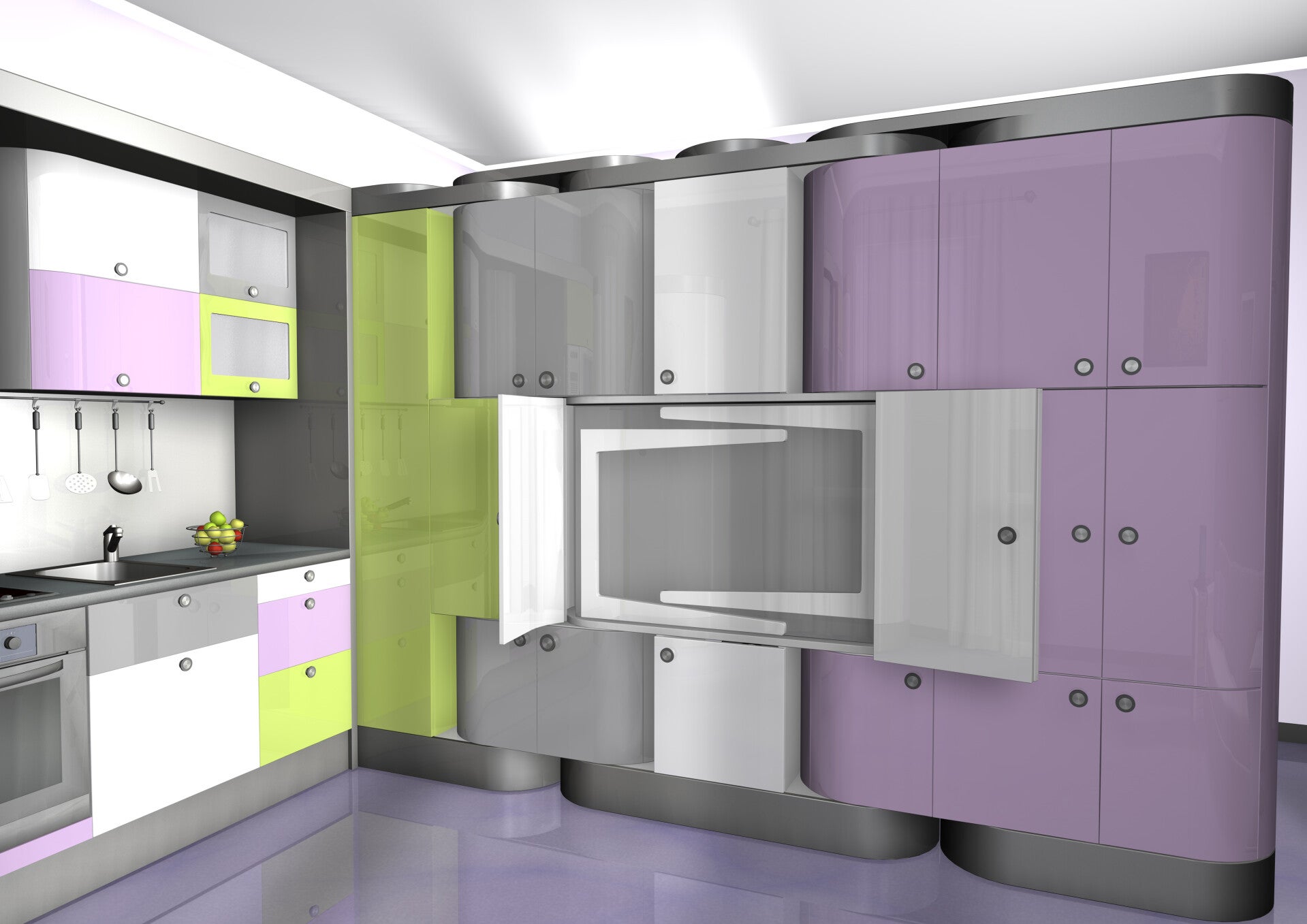 Soggiorno polifunzionale Render 3D prototipo.